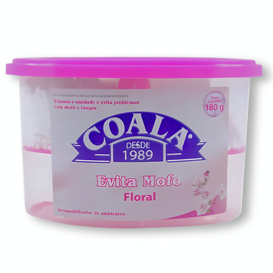 O Evita Mofo Floral – 180g – Coala é um desumidificador prático e perfumado, especialmente formulado para ambientes pequenos e fechados, como armários, gavetas, guarda-roupas e gabinetes. Sua fragrância floral suave ajuda a neutralizar odores, enquanto sua composição absorve a umidade do ambiente, dificultando o surgimento de mofo e fungos. O produto acumula a água extraída no fundo do recipiente, oferecendo proteção duradoura sem bagunça.