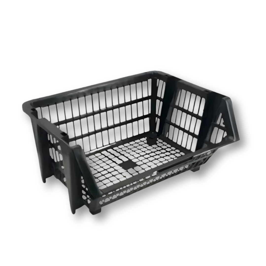 O cesto expositor encaixável é fabricado em plástico de alta resistência, projetado para suportar peso moderado e uso contínuo em ambientes comerciais. Seu sistema de encaixe permite empilhamento seguro quando cheio e encaixe interno quando vazio, reduzindo volume de armazenamento. Possui estrutura vazada que facilita visualização dos produtos e ventilação, sendo indicado para exposição de itens leves a médios como embalagens, utilidades e produtos de giro rápido.