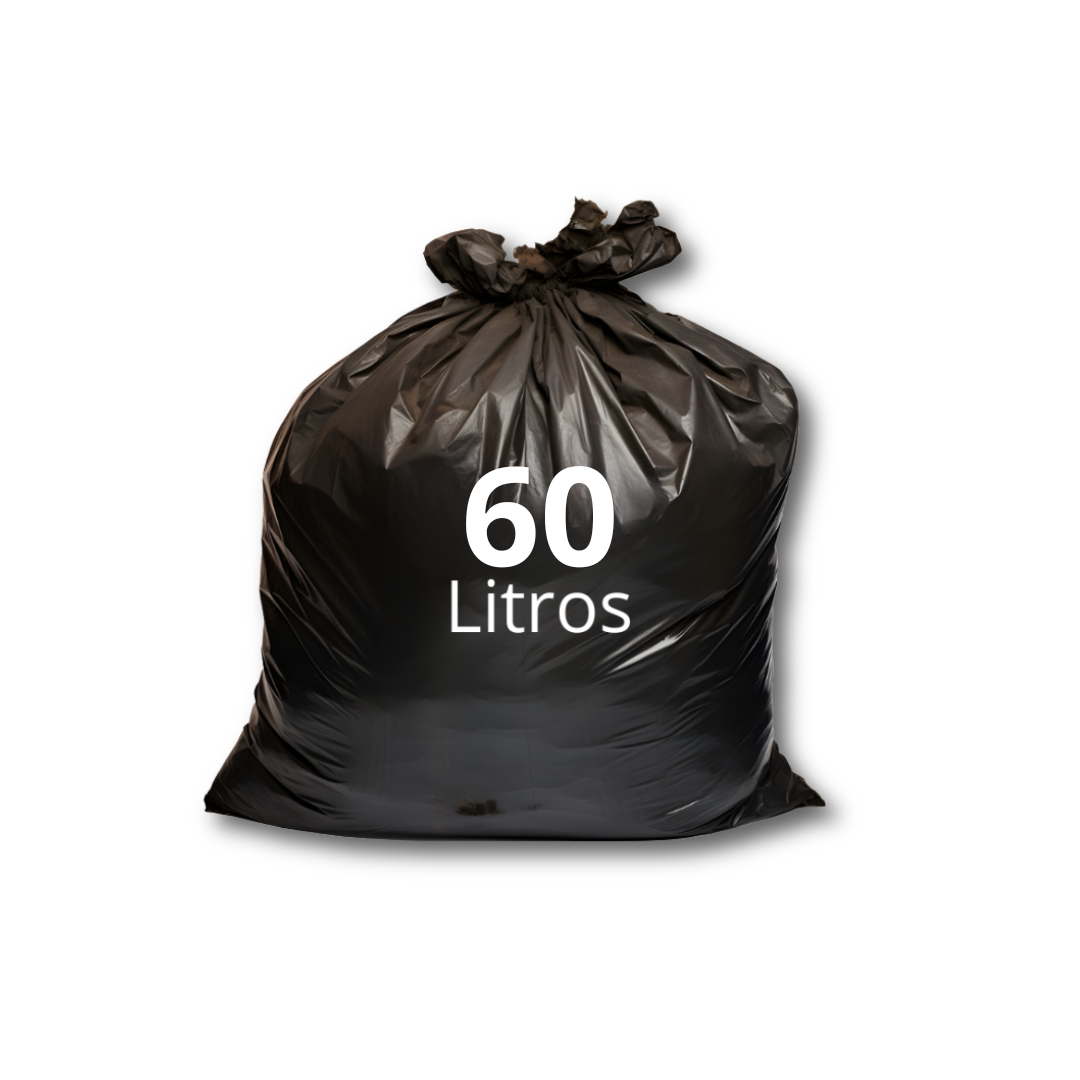 Saco de lixo preto, capacidade 60 litros, fabricado pela Badenplast. Indicado para acondicionamento e descarte de resíduos comuns em ambientes domésticos, comerciais e institucionais. Embalagem com 100 unidades, dimensões compatíveis com lixeiras médias.