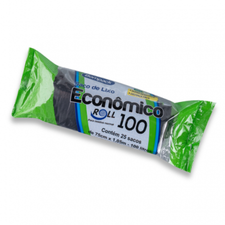 Pacote com 25 sacos para lixo preto, estilo rolo, com capacidade para 100 litros cada unidade. Fabricados em polietileno de alta espessura, garantem resistência contra rasgos e perfurações. Indicado para resíduos volumosos em ambientes como condomínios, hospitais, empresas, obras e cozinhas profissionais. Capacidade de carga aproximada de 15kg por saco e praticidade com formato em rolo destacável.